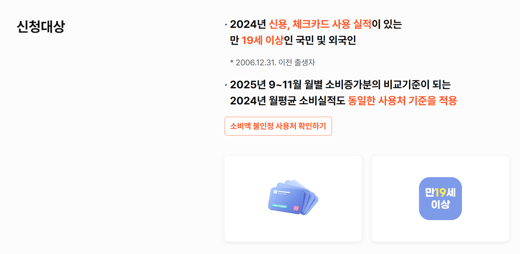 "* 신청 시 개인이 보유한 모든 국내 신용·체크카드 사용액이 자동으로 합산됨"