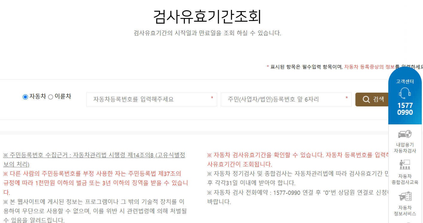 - 검사 주기: 차량 유형 및 연식에 따라 다름 (일반적으로 매 1~2년)