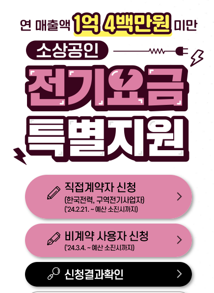 소상공인 전기요금 특별지원 소개, 신청하기, 신청결과 확인 등