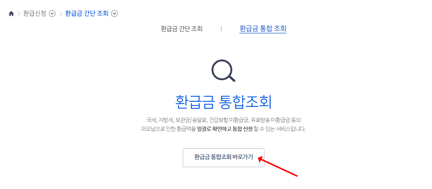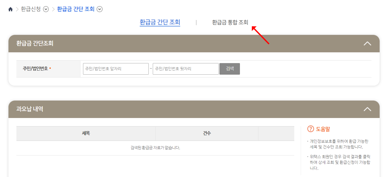 환급금 조회 (미환급금 통합조회)