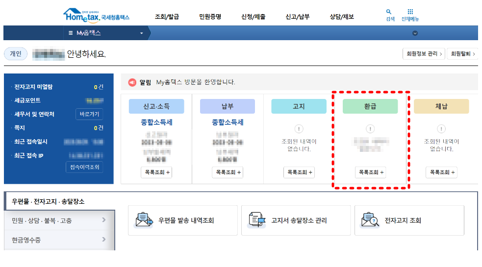 종합소득세 환급금 조회 방법