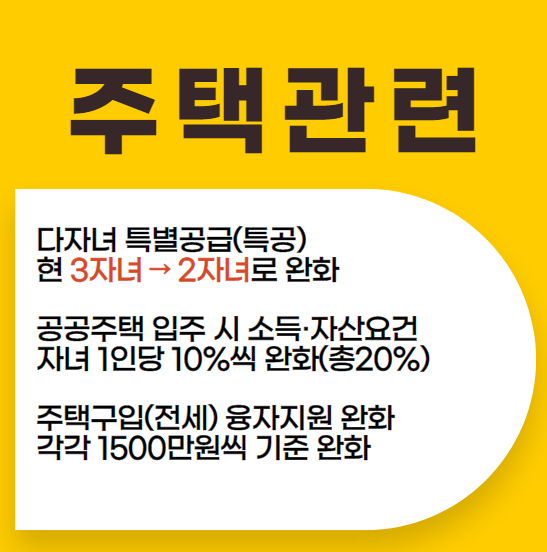 - 다자녀 특별공급(특공) 현 3자녀 → 2자녀로 완화