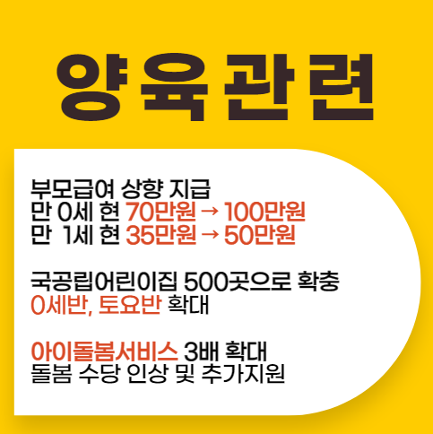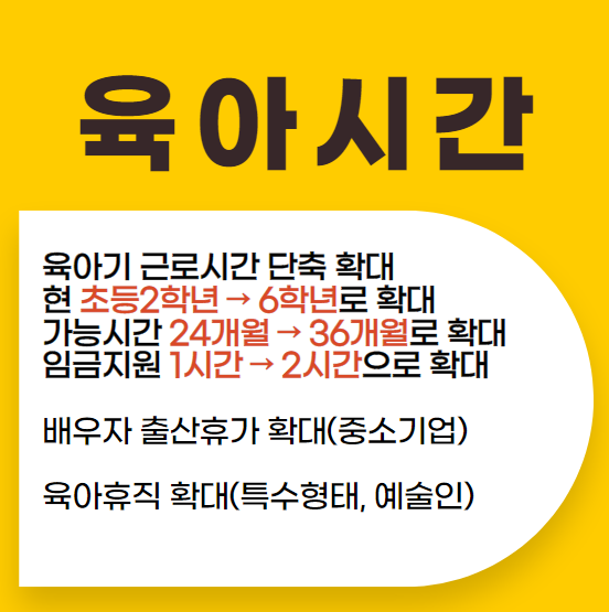 - 부모 1인당 임금 100% 지원을 현 하루 1시간 → 2시간으로 확대