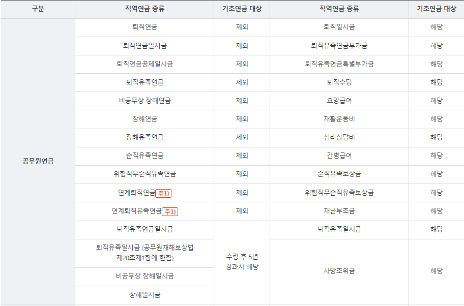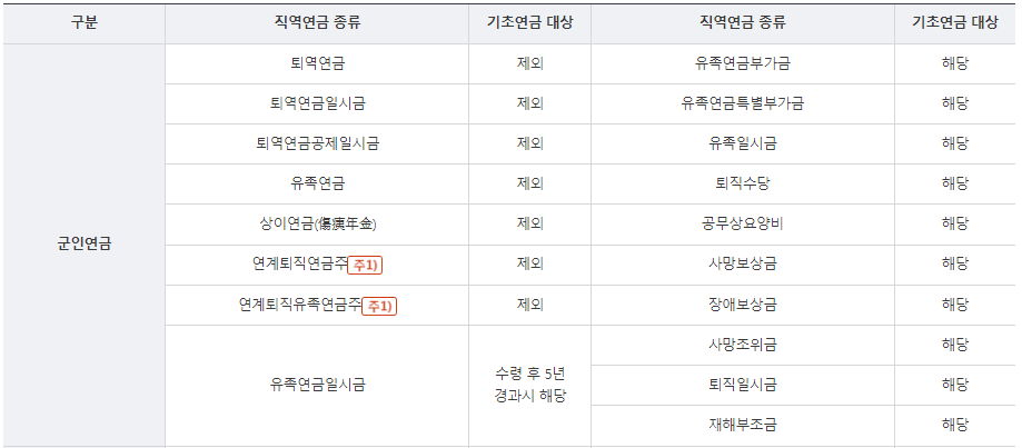 퇴역연금: 기초연금 대상에서 제외