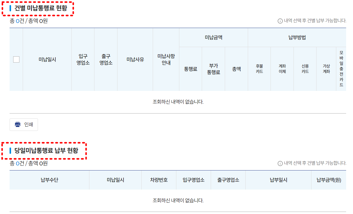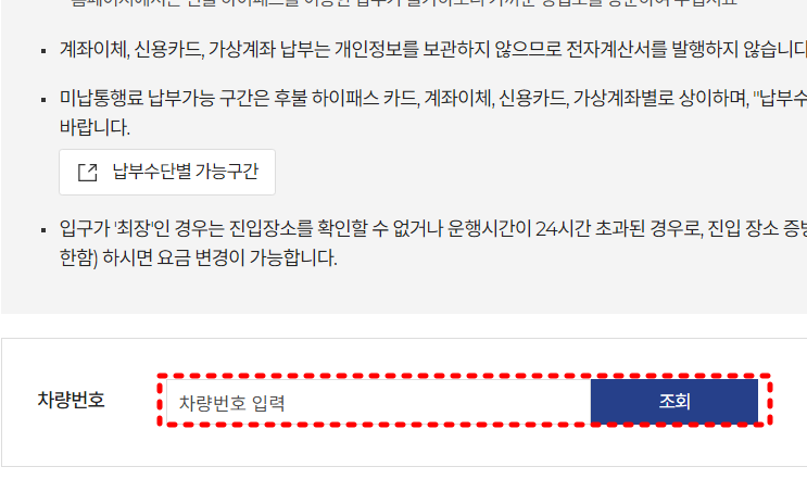 단, 미납통행료는 미납발생일로부터 최대 1일 이후부터 조회가 되니 방금 미납이 되었다면 조회가 안될 수 있다는 점 참고해주시기 바랍니다.