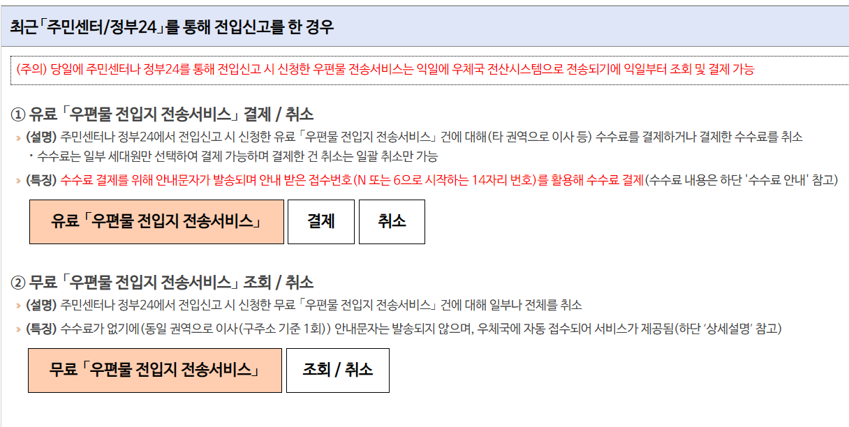 해당 서비스는 전입신고 시 정부24에서도 가능하며, 또한 더 정확하게는 '인터넷우체국'에서도 가능한데요, 편리하게 바로 신청하세요.