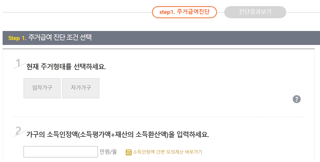 또는 마이홈 포털 온라인 사이트(https://www.myhome.go.kr/)를 통하면 주저급여 사전 진단이 가능하므로 여기서 사전에 조건이 되는지 간단히 조회하는 것도 편리합니다.
