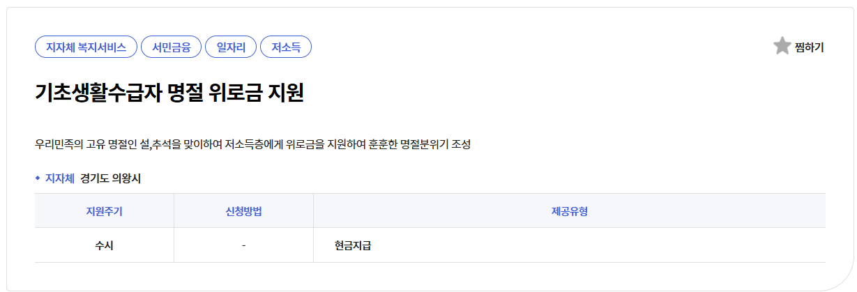 지급 시기: 설날이나 추석 직전에 지급되므로 신청 기간을 놓치지 않도록 유의하세요.