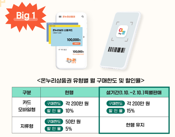 온누리 상품권 15% 할인